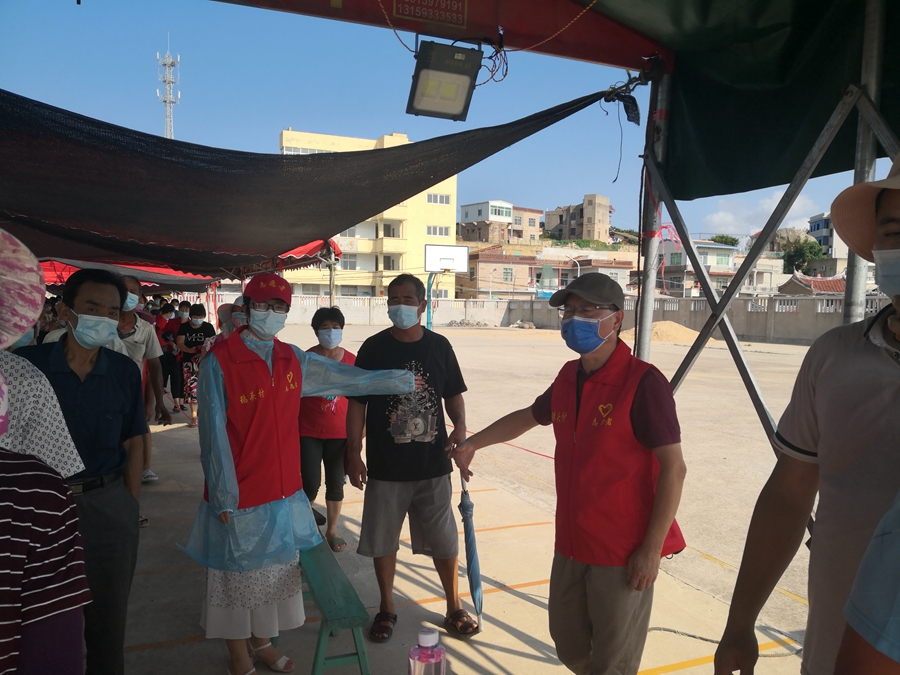 为助力我院挂钩村——秀屿区埭头镇鹅头村第三轮核酸检测工作有序、高效开展,9月19日中午,KY.COM开云体育(中国)科技公司党委紧急部署并向全院教职工发出第三批志愿者招募令,大家踊跃报名,迅速成立了一支由苏东明、林芹平、徐长安、黄玉霞、刘亚林、卓飞龙、连鸿霞、方越等人员组成的志愿服务先锋队。 下午两点,顶着炎炎烈日,第三批志愿者们紧急奔赴鹅头村检测采样点,并立马投入工作。有的负责信息采集录入工作,查看群众的身份证件;有的解答群众的疑问,维持现场秩序;有的引导群众扫码测量体温,提醒群众保持安全距离,做好个人防护;有的为现场检测人员、行动不便的老人等群体提供帮助,现场志愿服务有条不紊,忙而不乱。截止晚上七点,共协助完成1190剂的核酸检测。 面对疫情,志愿者们秉承着“奉献、友爱、互助、进步”的志愿者精神,冲锋在前,“疫”无反顾,以实际行动助力我院挂钩村防疫抗疫工作高效进行,成为疫情防控中一道亮丽的风景线。
